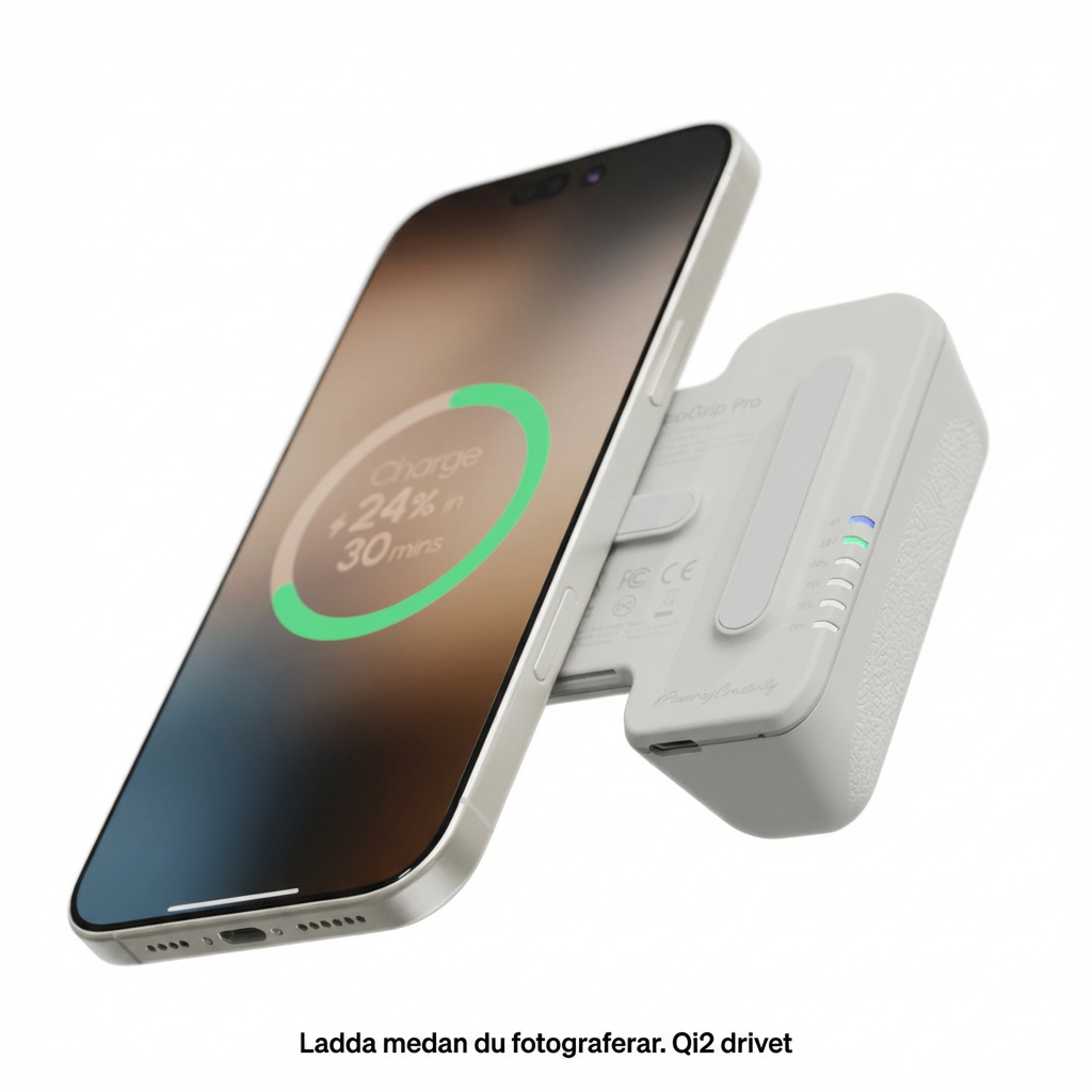 ProGrip™ har en inbyggd powerbank på 5 000 mAh som håller din mobil laddad även under längre fotograferingar. Den trådlösa Qi-laddningen ger full frihet utan kablar, och den integrerade bluetooth-slutaren låter dig ta skakfria bilder direkt från handtaget. Med stativläget kan du dessutom filma handsfree, ta stabila selfies och skapa content med maximal flexibilitet.