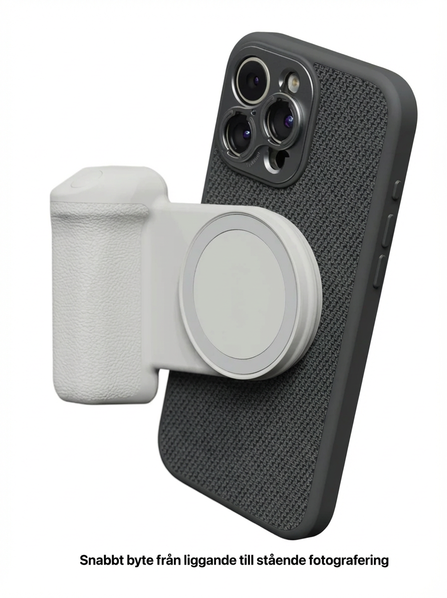 ProGrip™ är det ergonomiska kameragreppet som förvandlar din mobil till ett riktigt fotoredskap. Med sin magnetiska MagSafe-montering sitter mobilen säkert på plats, och det formade greppet ger dig stabilitet, precision och kontroll i varje bild. Oavsett om du fotar i vardagen, filmar till sociala medier eller dokumenterar resor – ProGrip™ gör fotograferingen både enklare och mycket roligare.